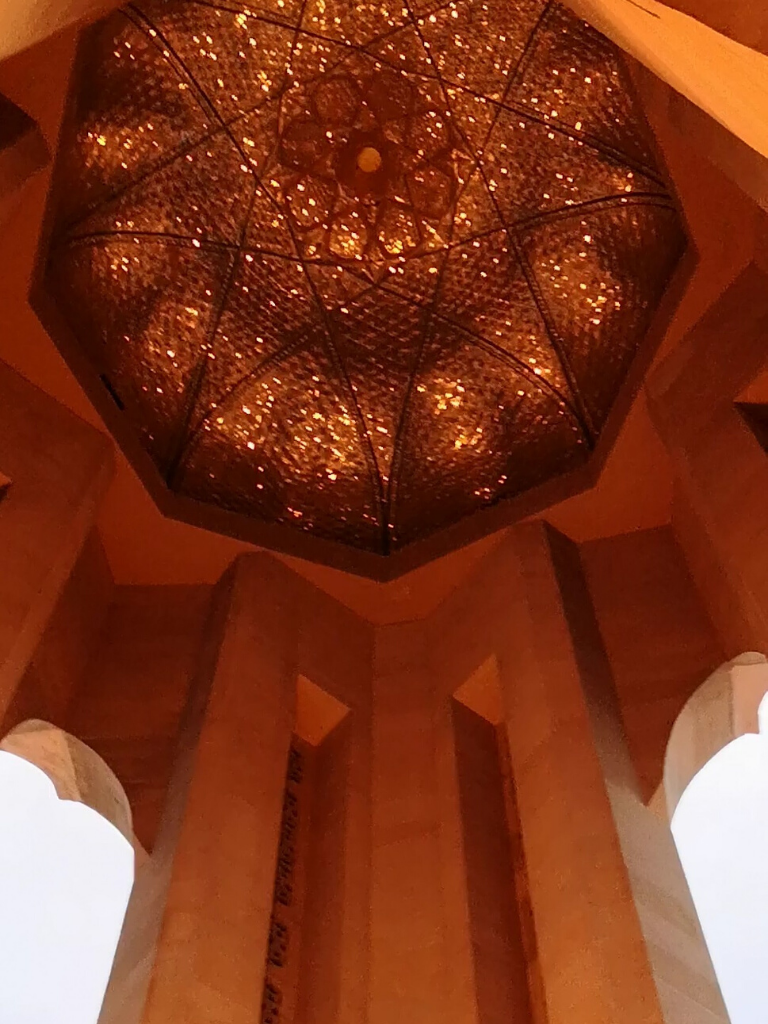 La cúpula interior tiene una serie de cristales que reflejan las llamas.