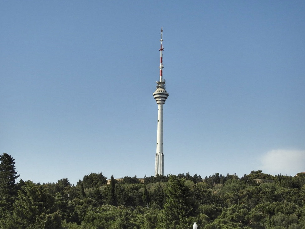 Distintos momentos de la historia se unen en una sola postal: El palacio de los Shirvanshas, las torres Flame y la torre de la televisón.