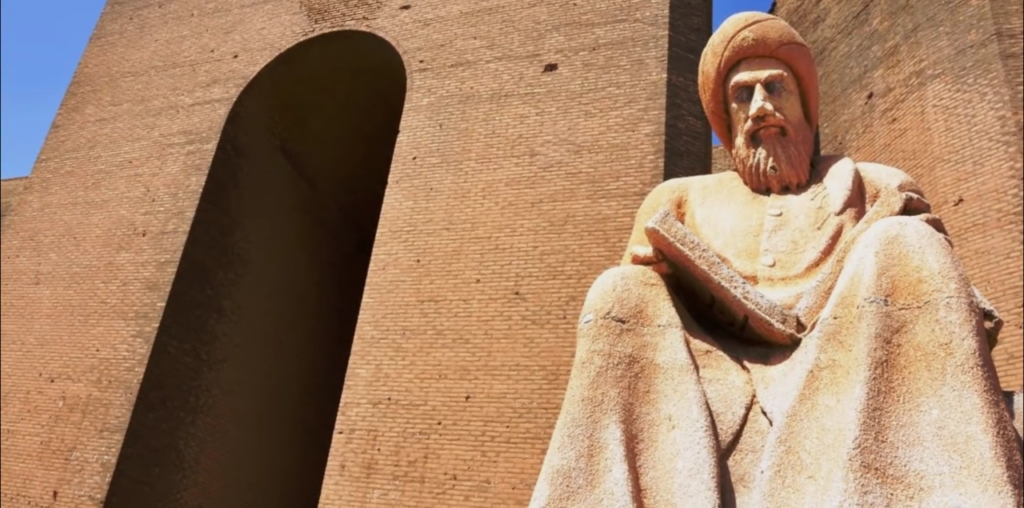 Escultura del historiador kurdo Ibn Al-Mustawfi en el Parque del Minarete.