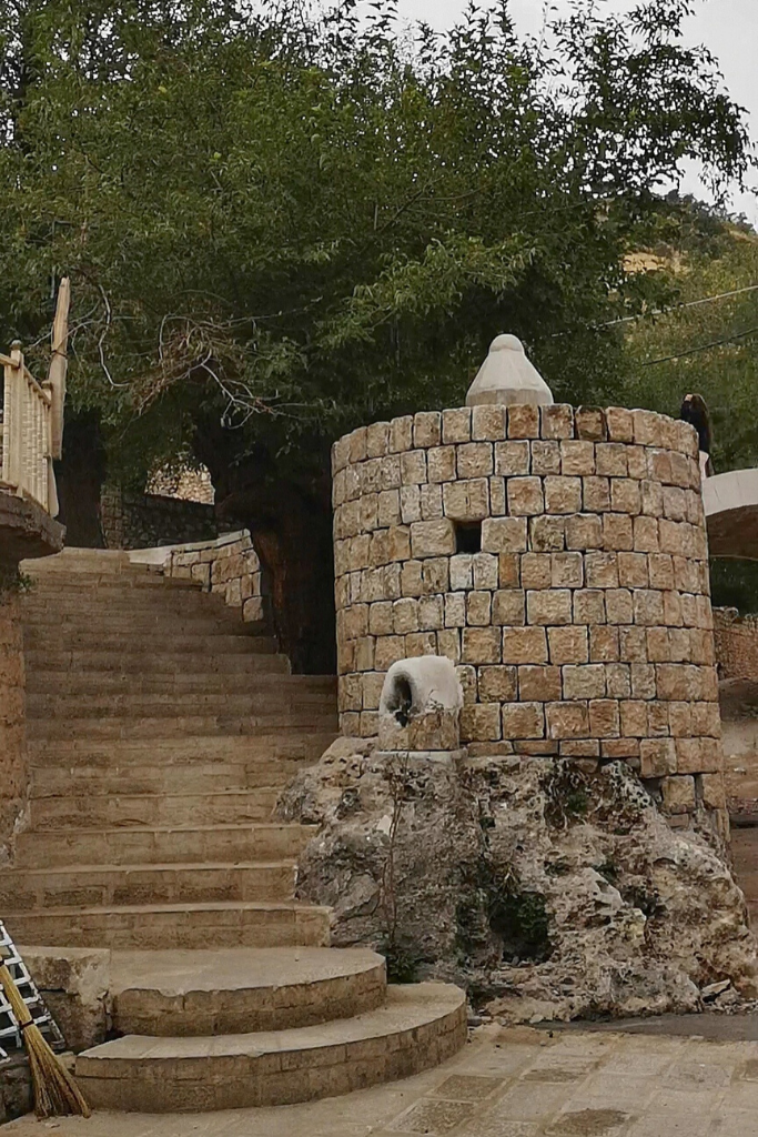 El bautisterio nos lo podremos encontrar al noreste del mausoleo del jeque Shams y al suroeste del santuario del jeque Adi.