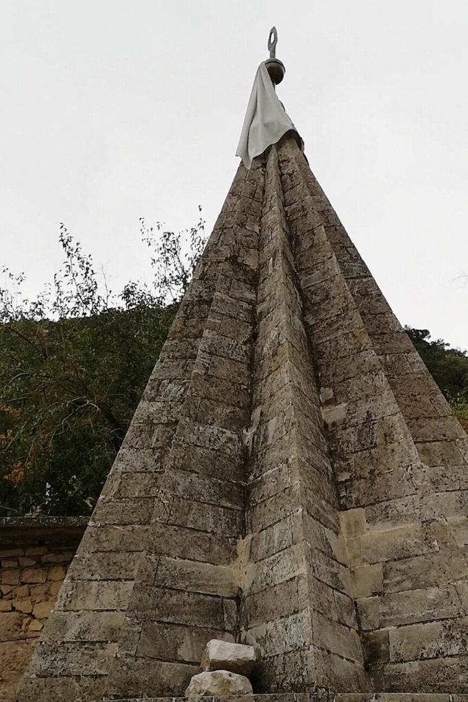 El mausoleo del Jeque Musleh es uno de los primero que encontramos a nuestra llegada. Situado al oeste de Lalish, a la izquierda de la entrada, data del siglo XIV y ya su forma cónica, nos introduce en la arquitectura de Lalish.