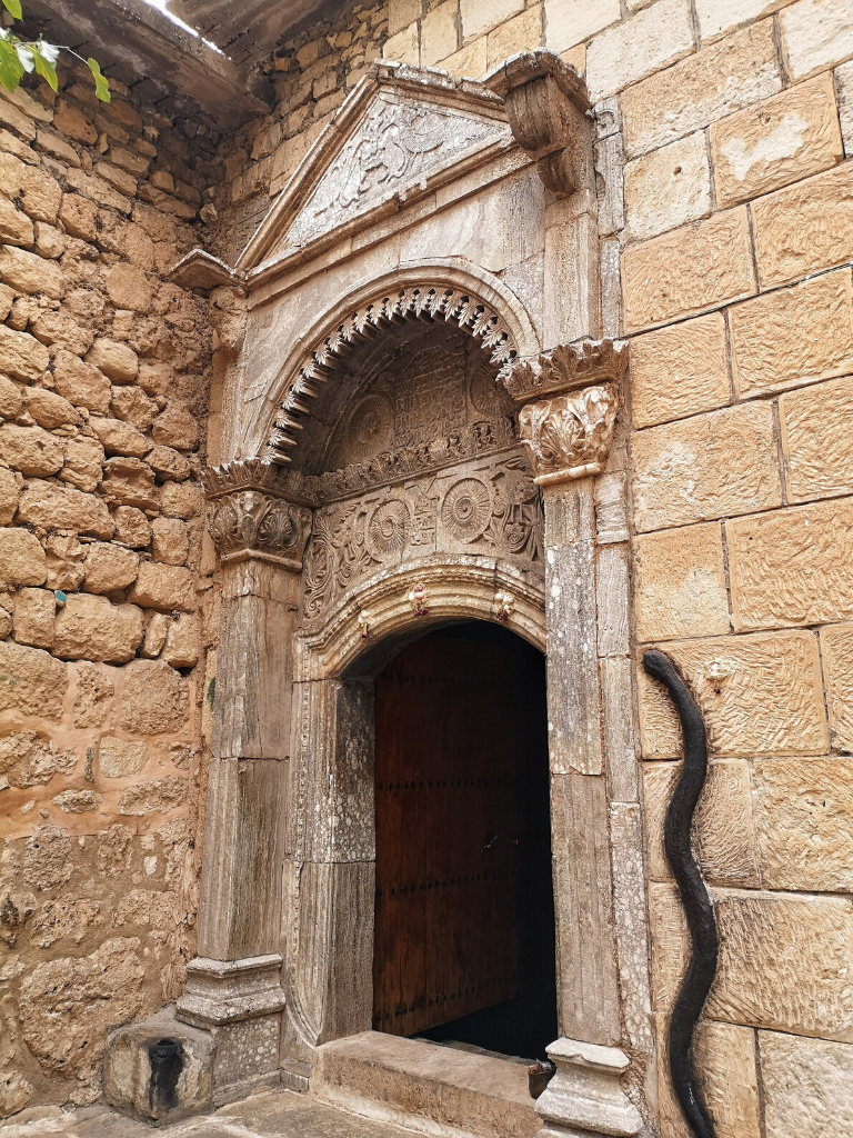 Una de las imágenes más llamativas cuando nos adentramos en la ciudad de Lalish es la serpiente negra que nos encontramos junto a la entrada principal.